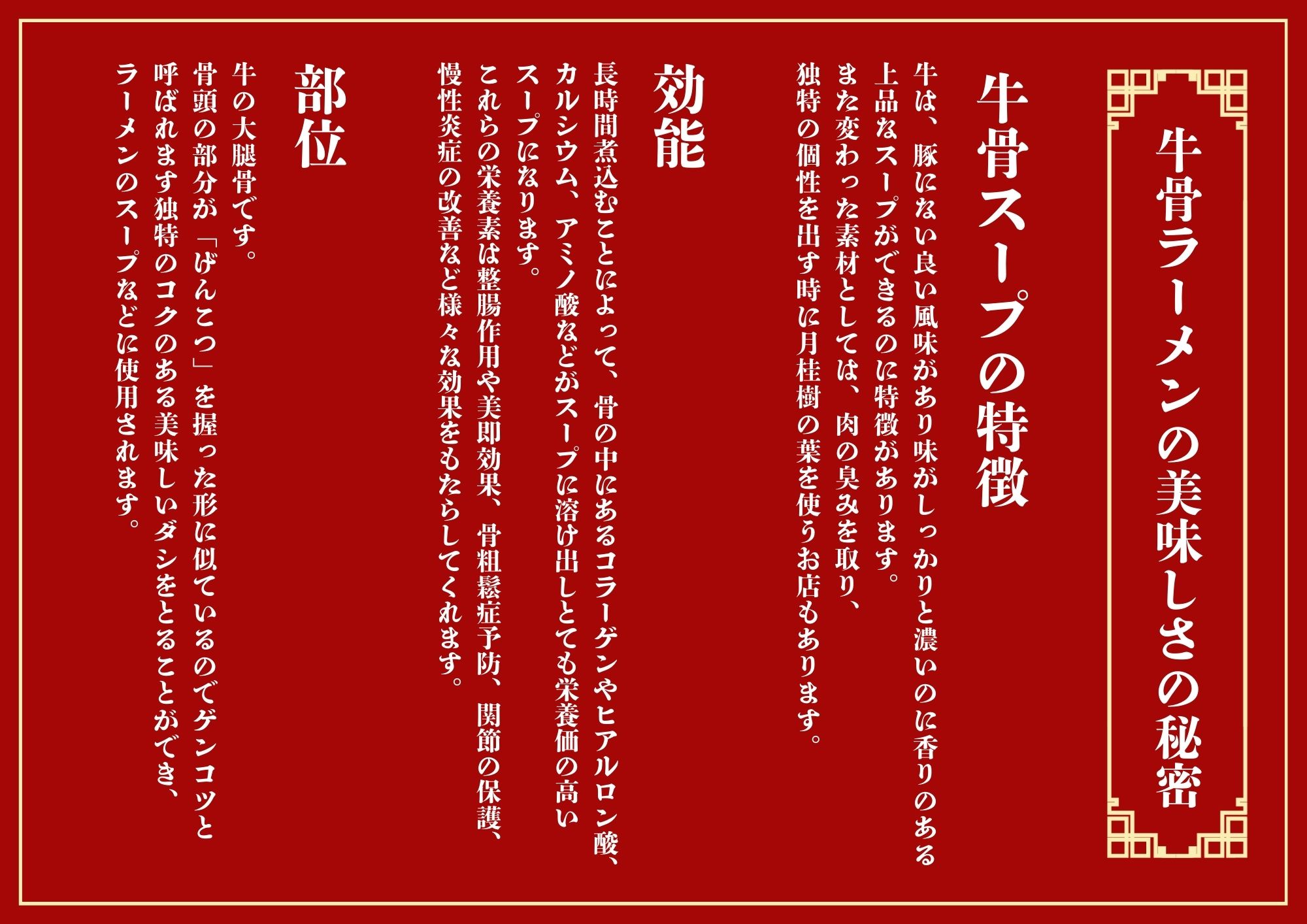 牛コツスープが特徴のラーメン店を直営で運営しています。